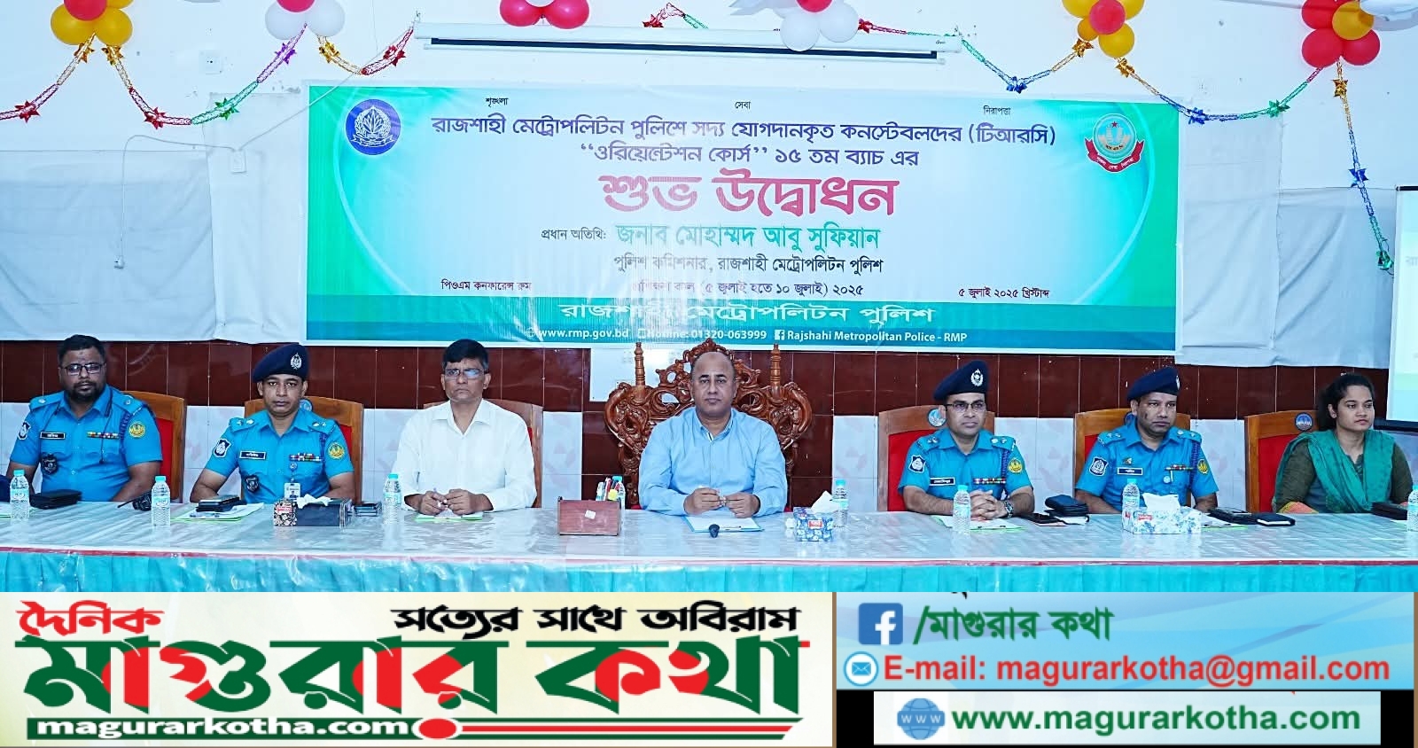 আজ ৫ জুলাই ২০২৫ খ্রিস্টাব্দ সকাল ৯.৩০ টায় আরএমপি পুলিশ ট্রেনিং স্কুলের আয়োজনে পুলিশ লাইন্স পিওএম কনফারেন্স রুমে রাজশাহী মেট্রোপলিটন পুলিশের মাননীয় পুলিশ কমিশনার জনাব মোহাম্মদ আবু সুফিয়ান মহোদয় সদ্য যোগদানকৃত কনস্টেবলদের ওরিয়েন্টেশন কোর্সের ১৫তম ব্যাচের আনুষ্ঠানিক উদ্বোধন করেন।
