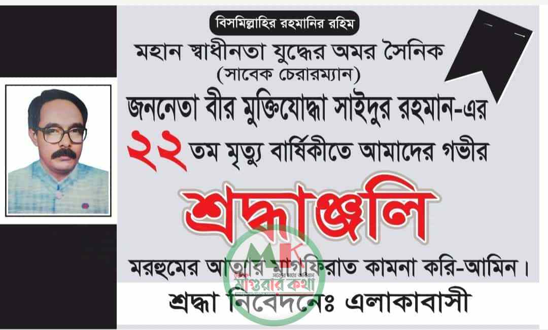 বীর মুক্তিযোদ্ধা সাইদুর রহমানের ২২ তম মৃত্যুবার্ষিকীতে গভীর শ্রদ্ধাঞ্জলি