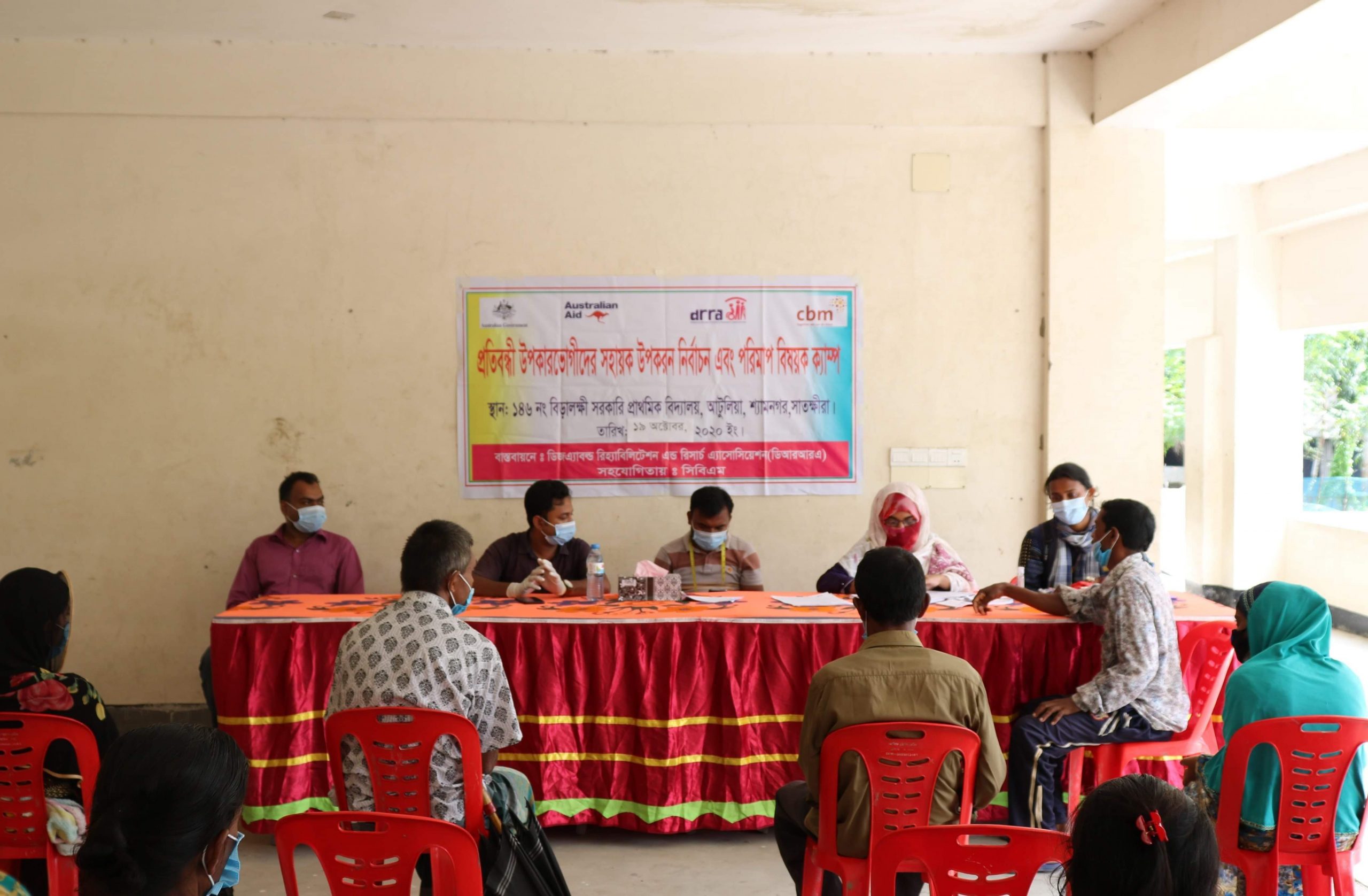 অনুষ্ঠানটির সার্বিক সহযোগীতায় ছিলেন সিসিডিআইডিআরএম প্রকল্পের প্রকল্প সমন্বয়কারী জনাব সায়েলাতুল হক, ডাটা এন্ড ডকুমেন্টেশন অফিসার জনাব অসিত দেবনাথ, মাঠ সমন্বয়কারী জনাব নুরুন্নবী হাসান ও জনাব রামপ্রসাদ মিস্ত্রি এবং আটুলিয়া ও বুড়িগোয়ালিনী থেকে ৪ জন কম্যুনিটি ভলান্টিয়ার - প্রদীপ, কমলেশ, স্বপন ও বিপুল। অনুষ্ঠানে আগত প্রতিবন্ধীদের মধ্যে ৮ জনের বিস্তারিত পরিমাপ নেয়া হয় এবং সহায়ক উপকরণের জন্য সমাজসেবা অধিদফতর এর সাথে যোগাযোগ এর সিদ্ধান্ত গৃহীত হয়।