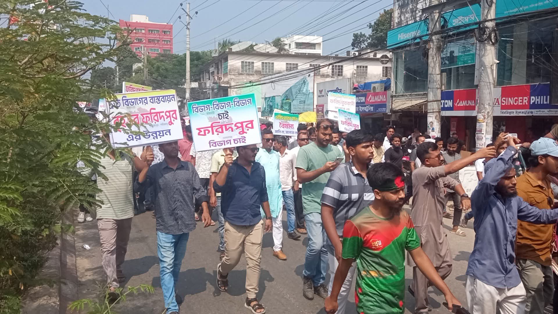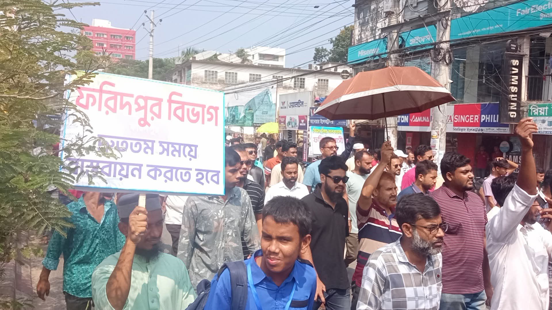 ফরিদপুর বিভাগ দ্রুত বাস্তবায়নের দাবিতে জনতার বিক্ষোভ