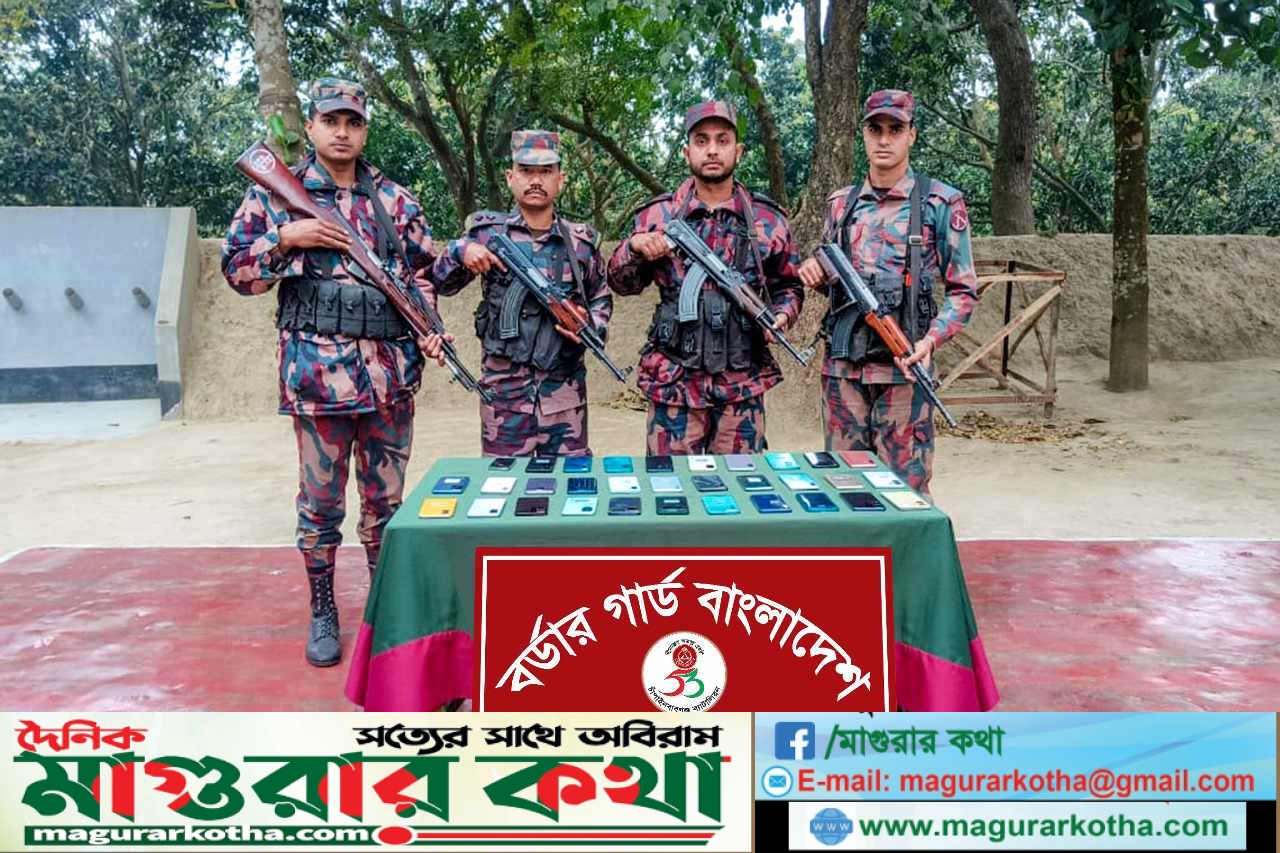 মনাকষা সীমান্তে গোপন তথ্যের ভিত্তিতে ২৩ ফেব্রুয়ারি ২০২৫ তারিখ সকাল আনুমানিক ০৫টা ৩৫ মিনিটে মনাকষা বিওপির দায়িত্বপূর্ণ সীমান্ত এলাকায় অভিযান পরিচালনা করে। উক্ত অভিযানে চাঁপাইনবাবগঞ্জ জেলার শিবগঞ্জ থানাধীন বাবুপুর ইউনিয়নের বোগলাউড়ি এলাকা থেকে লুকিয়ে রাখা অবৈধ ও চোরাচালানকৃত ৩২টি ভারতীয় মোবাইল উদ্ধার করে। উদ্ধারকৃত মোবাইল চাঁপাইনবাবগঞ্জ শুল্ক কার্যালয়ে জমা করার কার্যক্রম প্রক্রিয়াধীন।