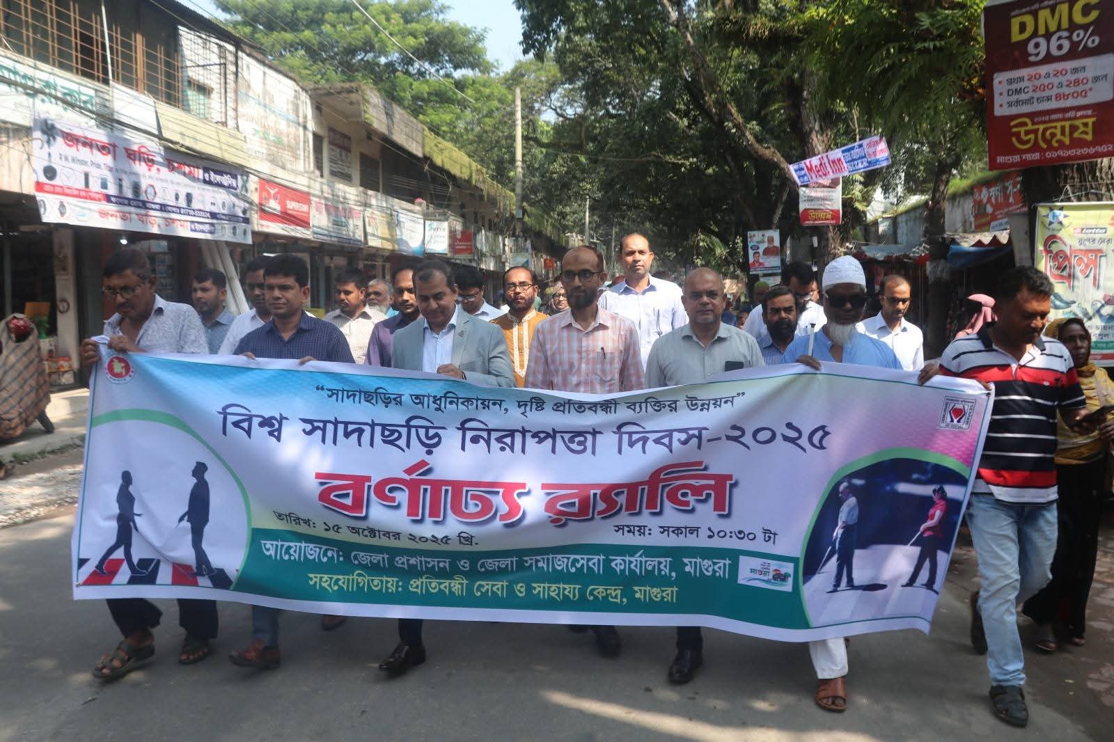 ১৫ অক্টোবর ২০২৫ খ্রি. বিশ্ব সাদাছড়ি নিরাপত্তা দিবস-২০২৫ উদযাপন উপলক্ষে সকাল ১০টা ৩০ মিনিটে জেলা প্রশাসকের কার্যালয় চত্বর থেকে একটি বর্ণাঢ্য র্যালি বের হয়। র্যালিটি প্রধান সড়ক প্রদক্ষিণ করে পুনরায় জেলা প্রশাসকের কার্যালয় চত্বরে এসে শেষ হয়। জেলা প্রশাসকসহ সমাজসেবা বিভাগ, প্রতিবন্ধী সংগঠনের সদস্য ও গণমাধ্যমকর্মীরা এতে অংশ নেন।