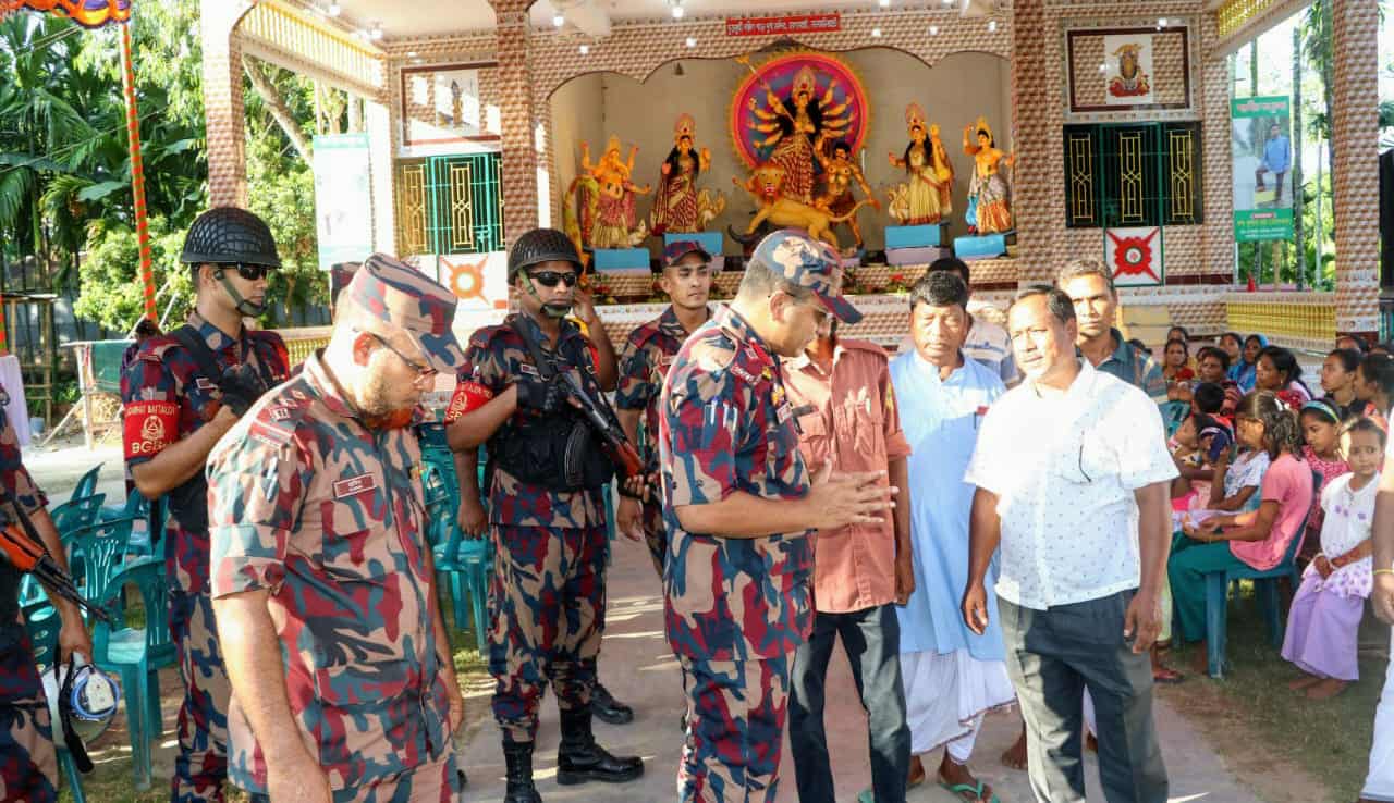 সীমান্তবর্তী পূজা মন্ডপে কড়া নজরদারিতে ১৫ বিজেবি,১৪৫টি পূজা মণ্ডপে গোয়েন্দা নজরদারি ও টহল জোরদার