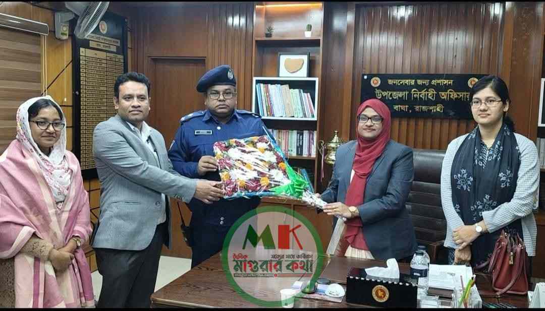 বাঘা থানার নতুন ওসি সেরাজুল হককে ইউএনও শাম্মী আক্তারের ফুলেল শুভেচ্ছা