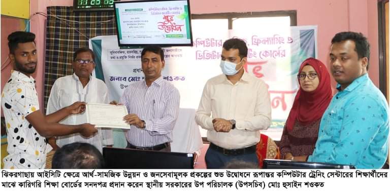 যশোরের ঝিকরগাছায় আইসিটি ক্ষেত্রে আর্থ-সামজিক উন্নয়ন ও জনসেবামূলক প্রকল্পের শুভ উদ্বোধন করা হয়েছে। পেন ফাউন্ডেশন কর্তৃক বাস্তবায়িত সরকারের ডাক, টেলি যোগাযোগ ও তথ্য প্রযুক্তি মন্ত্রণালয়, তথ্য ও যোগাযোগ প্রযুক্তি বিভাগের উদ্ভাবনী ও বিশেষ অনুদান শাখা হতে আইসিটি ক্ষেত্রে আর্থ-সামজিক উন্নয়ন ও জনসেবা মূলক প্রকল্প বাস্তবায়নের লক্ষ্যে চলতি ২০২১-২২ অর্থবছরে (১ম রাউন্ডে) ০৩ মাস মেয়াদী সুবিধাবঞ্চিত, হতদরিদ্র, নৃ-গোষ্ঠী ও প্রতিবন্ধী জনগোষ্ঠীকে তথ্য ও প্রযুক্তি নির্ভর নতুন প্রজন্ম গড়ে তোলা প্রকল্পে সর্বমোট ৮০জনের প্রশিক্ষণের উদ্বোধনী করেন অনুষ্ঠানের প্রধান অতিথি স্থানীয় সরকারের উপ পরিচালক (উপসচিব) মোঃ হুসাইন শওকত।