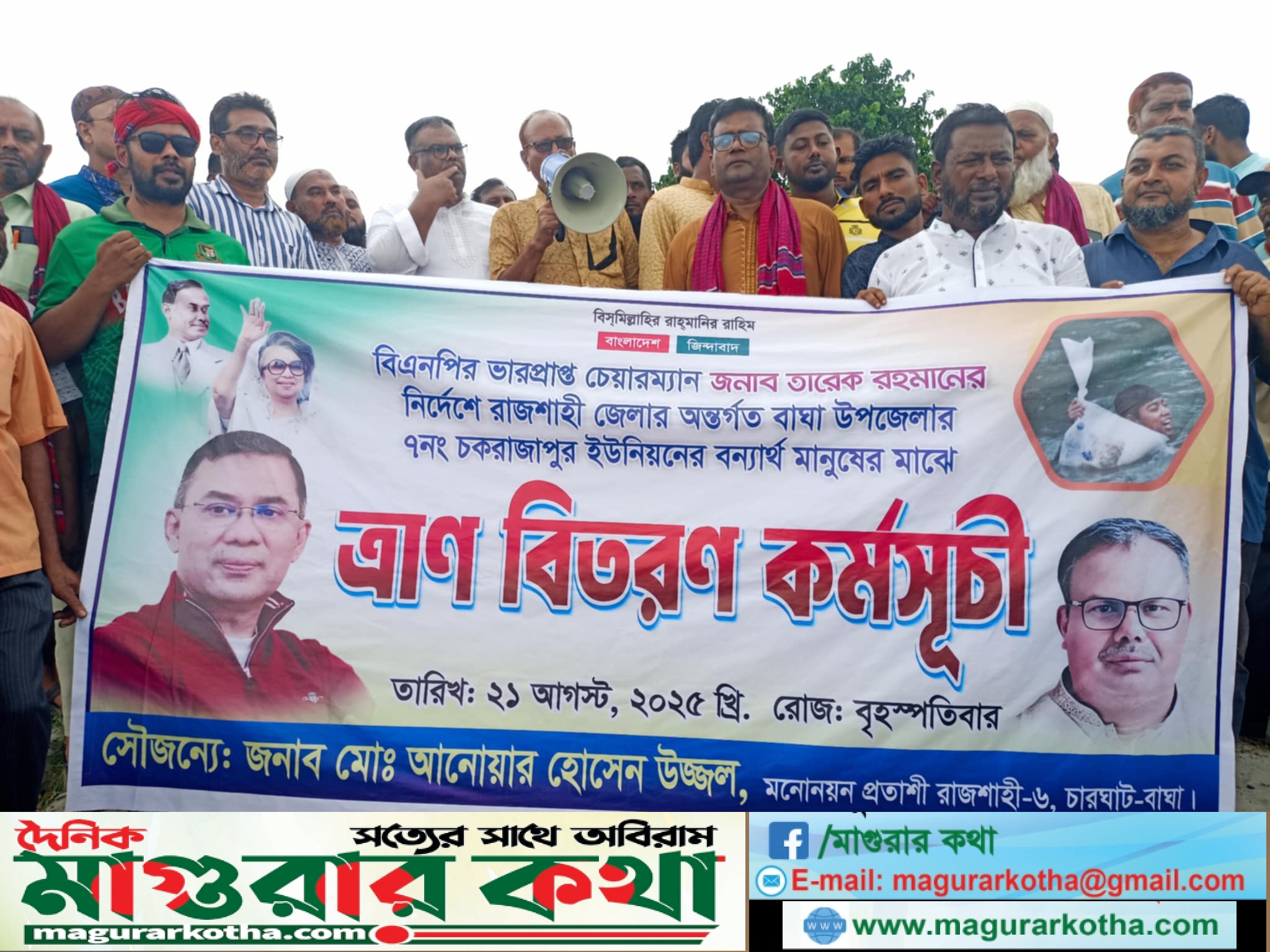 রাজশাহীর বাঘা উপজেলার বিস্তৃর্ণ পদ্মার চরাঞ্চলে বন্যা কবলিত অসহায় মানুষের মাঝে এবার ত্রাণ সামগ্রী বিতরণ করলেন বিএনপি নেতা আনোয়ার হোসেন উজ্জল।আজ বৃহস্পতিবার(২১ আগষ্ট ) সকাল থেকে বন্যা কবলিত বিভিন্ন এলাকায় পানির মধ্যে দাড়িতে তিনি ত্রাণ সামগ্রী বিতরণ করেন। এ সময় তার সাথে উপস্থিত ছিলেন বাঘা উপজেলা বিএনপি ও সহযোগী সংগঠনের কেতৃবৃন্দ।
