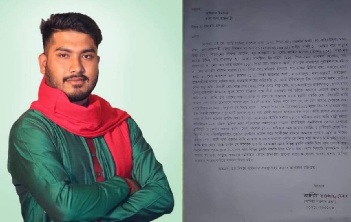 অভিযোগ সূত্র জানা যায়, বাঘা উপজেলার পাকুড়িয়া ইউনিয়নের আলাইপুর হাজামপাড়া (শেখপাড়া) গ্রামের বাচ্চু শেখের ছেলে শান্ত শেখ দীর্ঘ ১ বছর থেকে এই স্কুলছাত্রীকে বিভিন্ন ভাবে প্রেম প্রস্তাব ও ইফটিজিং করে আসছে। স্কুল ছাত্রীটি শান্তোর প্রস্তাবে রাজি না হওয়ায় বিভিন্ন দিন নানান ভাবে হুমকি ধামকি দিয়ে আসছিল। ছাত্রী নিরুপায় হয়ে তার বাবা-মাকে জানাই। ছাত্রীর বাবার নিষেধে কিছুদিন বখাটে যুবক শান্তো বিরক্ত করা থেকে বিরত থাকে। স্কুলছাত্রীর বাবা গত ডিসেম্বর মাসে বিদেশে যাওয়ার পরে বখাটে শান্ত শেখ রাস্তাঘাটে পূর্বের ন্যায় আবার বিরক্ত করা শুরু করে। ০৫-০২-২০২২ ইং তারিখে প্রতিদিন এর ন্যায় বাঘা উপজেলা সদরে মুক্তিযুদ্ধা ভবনের সামনে আইডিয়াল কনফিডেন্স কোচিং সেন্টারে প্রাইভেট ও কোচিং করতে আসে স্কুলছাত্রী। বেলা ১২টার সময় প্রাইভেট ও কোচিং শেষে হওয়ার পূর্বে পরিকল্পিতভাবে কোচিং সেন্টারের আঙ্গিনায় প্রবেশ করে বখাটে শান্ত। ছাত্রী কে পুনরায় প্রেম ও বিয়ের প্রস্তাব দেয় সে।