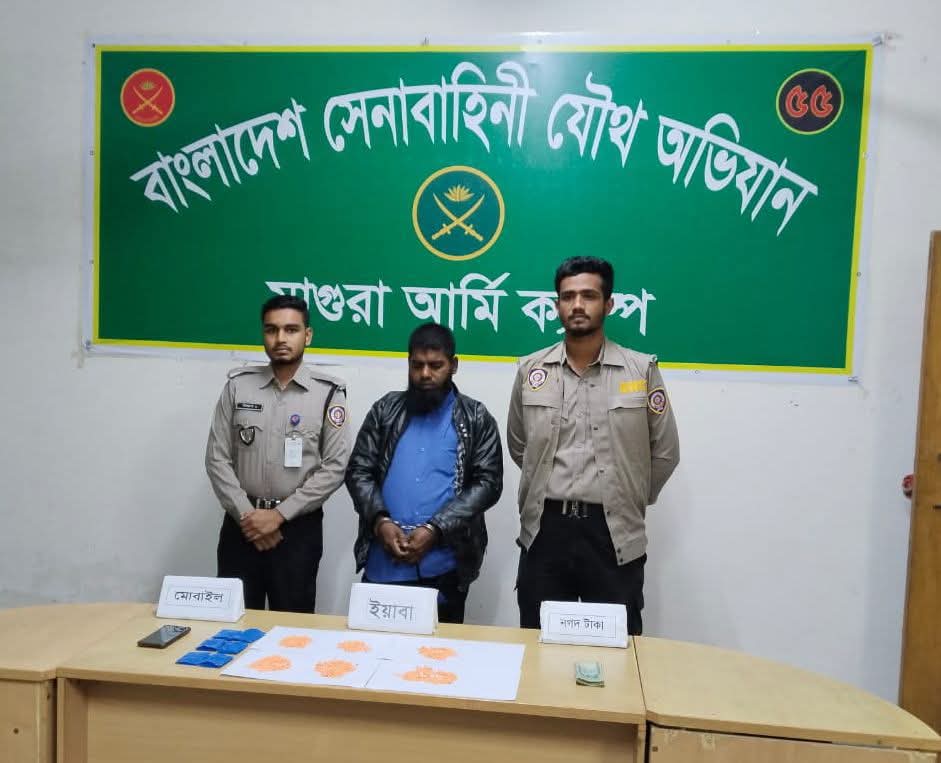 মাগুরা মহম্মদপুর উপজেলার বড়রিয়া এলাকা থেকে বাংলাদেশ সেনাবাহিনীর যৌথ অভিযানে ১৩শত পিস ইয়াবাসহ আশরাফুল (৪৩) নামের এক যুবক আটক । রোববার সকালে তার নিজ বাড়ি থেকে তাকে আটক করা হয়।