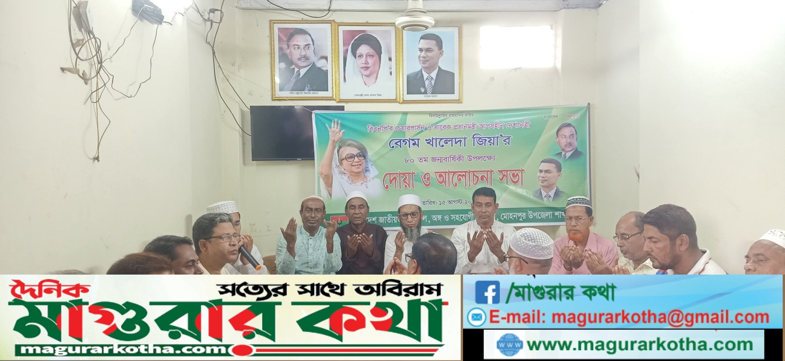 লরাজশাহীর মোহনপুর উপজেলা বিএনপির অঙ্গ ও সহযোগী সংগঠন আয়োজনে আজ (১৫আগষ্ট) শুক্রবার বিকালে মোহনপুর উপজেলা বিএনপি দলীয় কার্যালয়ে বিএনপির চেয়ারপারসন সাবেক প্রধানমন্ত্রী বেগম খালেদা জিয়ার ৮০ তম জন্মদিন উপলক্ষে আলোচনা সভা ও দোয়া মাহফিল আয়োজনে করা হয়।