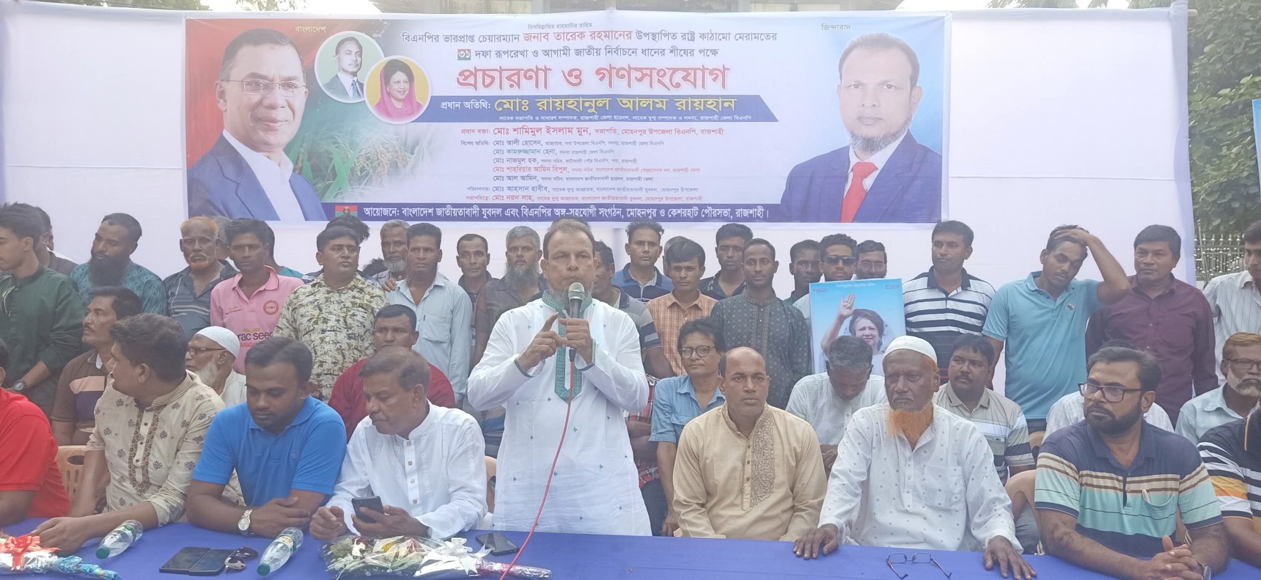 রাজশাহীর মোহনপুরে জাতীয়তাবাদী দল (বিএনপি)'র ভারপ্রাপ্ত চেয়ারম্যান তারেক রহমানের উপস্থাপিত রাষ্ট্র কাঠামো মেরামতের ৩১ দফা রূপরেখা ও আগামী জাতীয় নির্বাচনে ধানের শীষের পক্ষে প্রচারণা ও গণসংযোগ অনুষ্ঠিত হয়েছে। সোমবার বিকেলে উপজেলা চত্তরে এ প্রচারণা ও গণসংযোগ করে দলটির নেতাকর্মীরা।