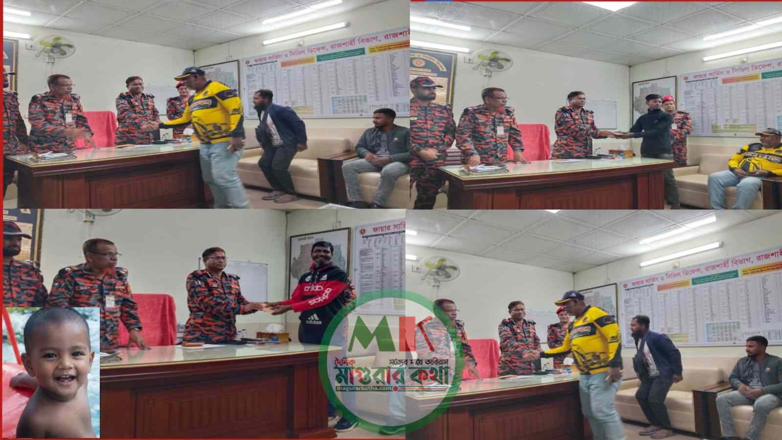 রাজশাহীর তানোরে কূপে পড়ে যাওয়া শিশু সাজিদকে উদ্ধার অভিযানে সাহসিকতা ও মানবিকতার পরিচয় দেওয়ায় ভেকু মেশিন দিয়ে মাটি খননে নিয়োজিত ভেকু চালক ও পরিচালনাকারীদের সম্মাননা প্রদান করা হয়েছে।