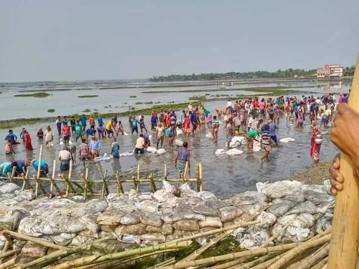 সাতক্ষীরা শ্যামনগরের খোলপেটুয়া নদীর বেড়িবাঁধটি অবশেষে স্থানীয় হাজার হাজার মানুষের স্বেচ্ছাশ্রমে সংস্কার করা হয়েছে