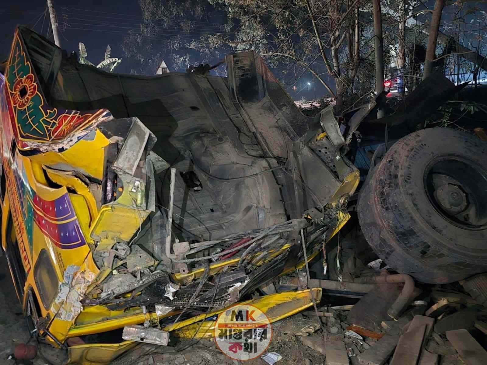 রাজশাহীতে ট্রেনের ধাক্কায় বাড়ির ওপর উড়ে গিয়ে পড়ল ট্রাক